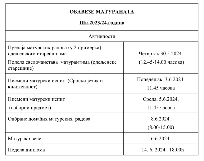- Драги матуранти, списак књижевних дела и упутство за писање матурског рада можете погедати на следећим линковима:
