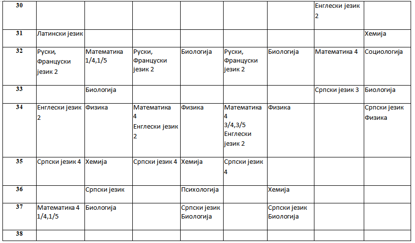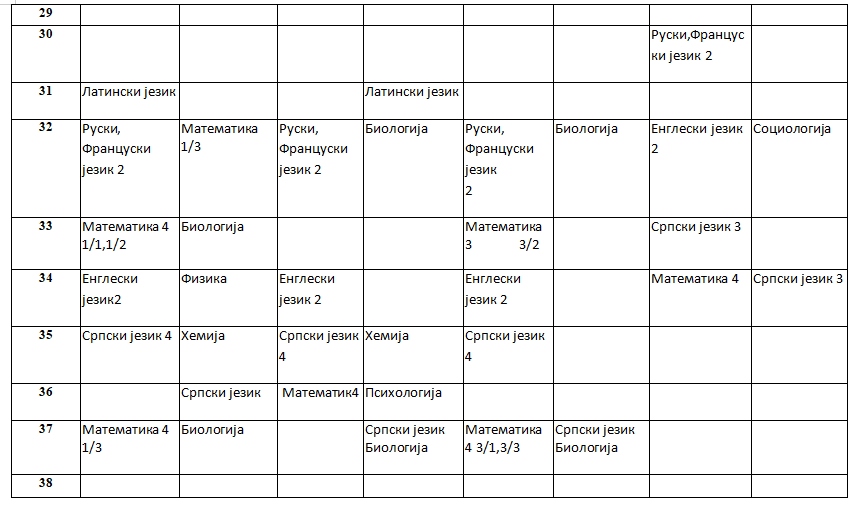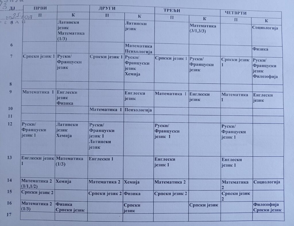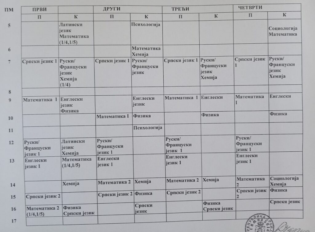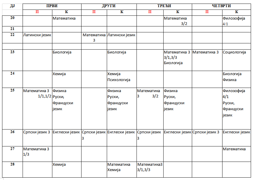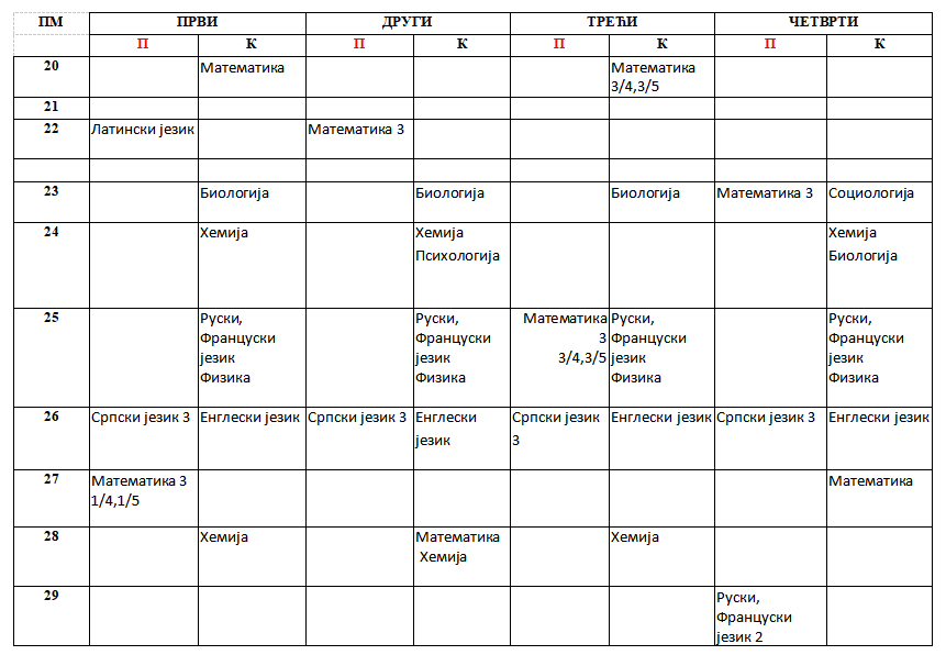 Распоред писмених задатака и контролних вежби по недељама, за ПРВО ПОЛУГОДИШТЕ школске 2025/2026. године: